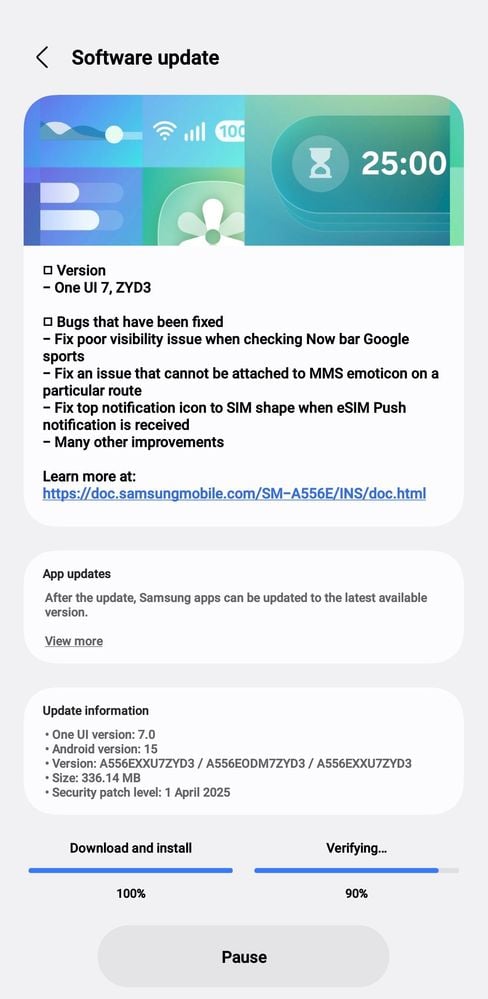 According to the changelog, it fixes three issues, offers many improvements, and brings the April 2025 security patch, which you can check out in the screenshot below (via Tarun Vats). The latest update is 336.14MB in size.