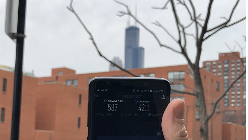 The folks over at PCMag tested several AT&T LAA sites in downtown Chicago using a regular retail Galaxy S9. They were able to achieve these speeds out on the street on a public network and not at a test site. AT&T is far from the only carrier that's doing this. T-Mobile and Verizon are also installing Licensed Assisted Access sites in major cities across the country.