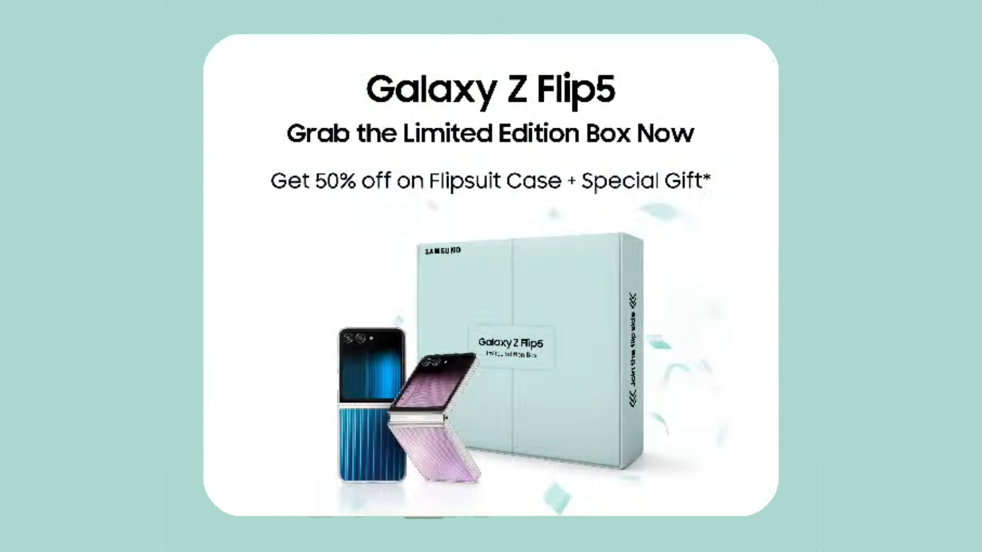Samsung has launched the Galaxy Z Flip 5 Limited Edition Box in India. The special edition of the smartphone comes bundled with the Flipsuit Case. Inside the box, you'll also get an interactive card which will come printed with an image of one of the members of the BTS band, and you can use this card with the Flipsuit Case.