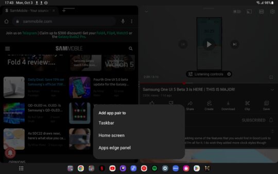 Before we begin, we should mention that we have used the Galaxy Tab S7 FE running One UI 4.1.1 for the screenshots and screen recordings you can see below. However, these same methods work with other tablets and Galaxy Z Fold devices running One UI 4.1.1. And barring anything that relates to the taskbar — which is unavailable on smaller-screen devices — every Galaxy flagship running One UI 4.1.1 or later can enjoy most of these new Multi-Window features.