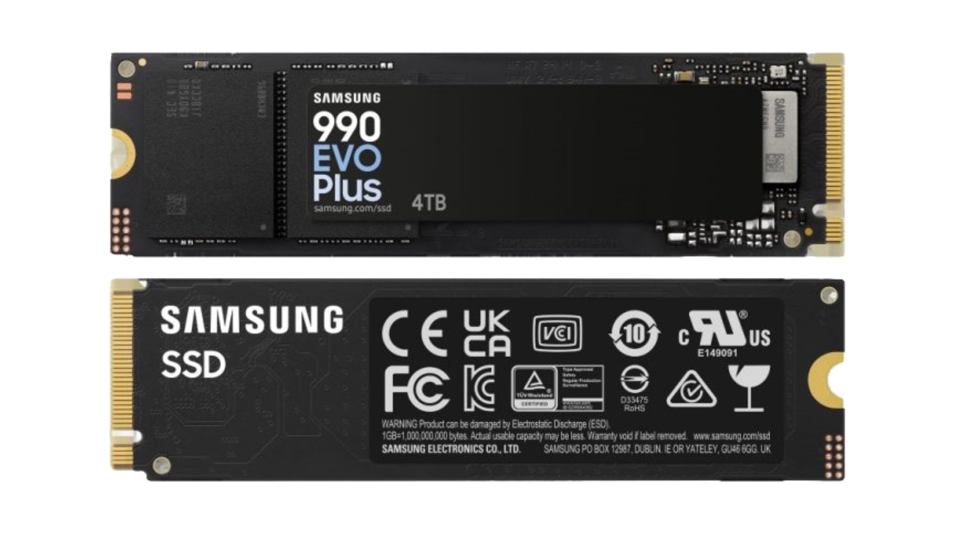The 990 EVO Plus is a Gen5 PCIe NVMe SSD with sequential read/write speeds that almost match the 990 PRO. It tops 7,250/6,300MB/s.