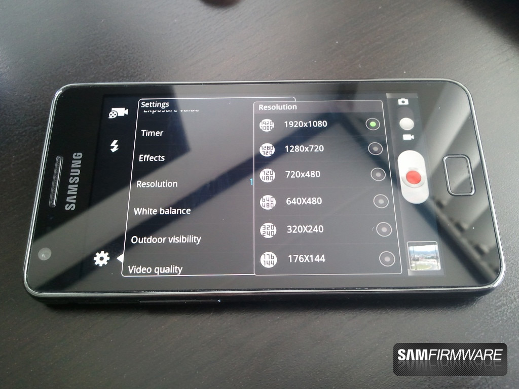 The camera of the Galaxy SII is very good. We like the Full HD camcorder option inside of the Galaxy S II. We also like the place of the camera on the back of the Galaxy S II. It's more of a bussines look thanks to this. Before we go the movies and pictures we like to show you some settings of the camera. Because the settings are normal Android basic its not that special. We keep everything for our movies and pictures in NORMAL mode. See here some Camera settings.