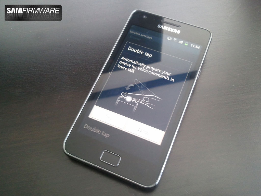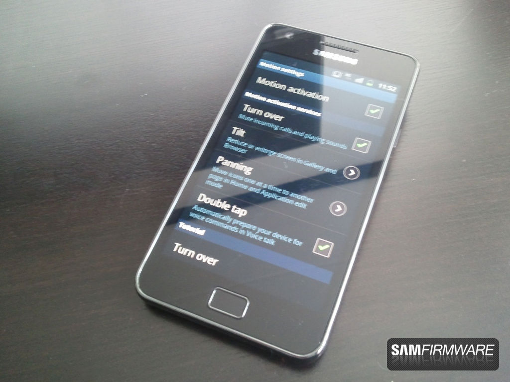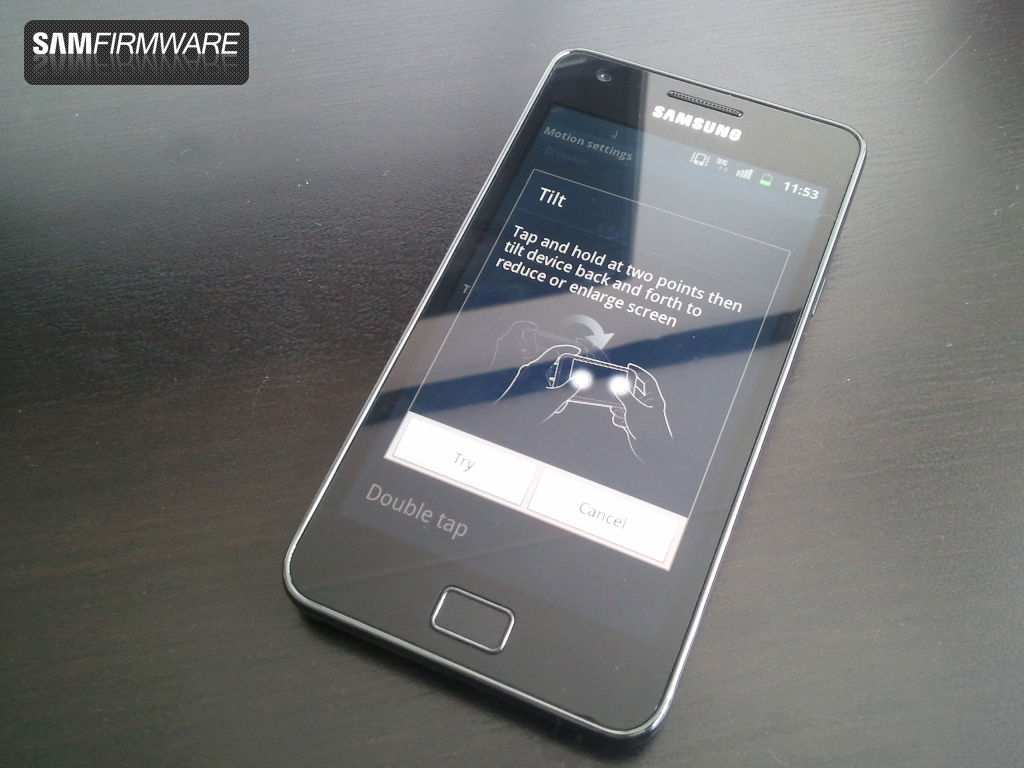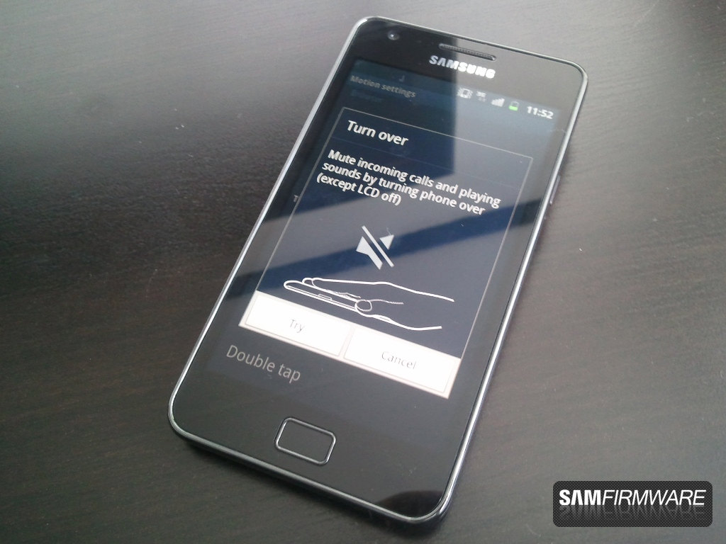 Samsung put also some smart features on the Galaxy S II. You can find that under Settings…”Motion” is the name. HTC use this also on his smartphones.