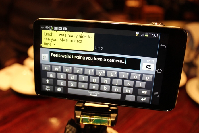 Although the Galaxy Camera does not allow phone calls, you are able to send and receive text messages, so there’s no reason other than inappropriate positioning of microphone and loudspeaker, why you shouldn’t be able to make phone-calls from it. Using third party services such as Viber it is perfectly possible – which makes the Galaxy Camera one of the most versatile devices on the market. We proved this last week in London by making the world’s first(?) Google Hangout from a camera. Ridiculous! I can use any app on the device which is available from Google Play.