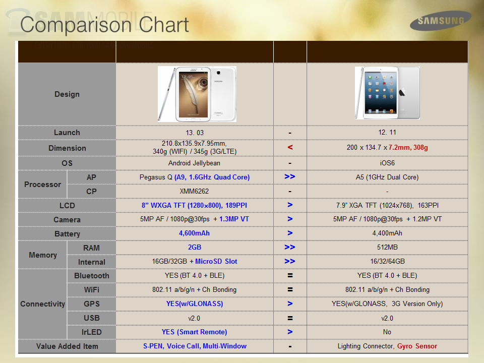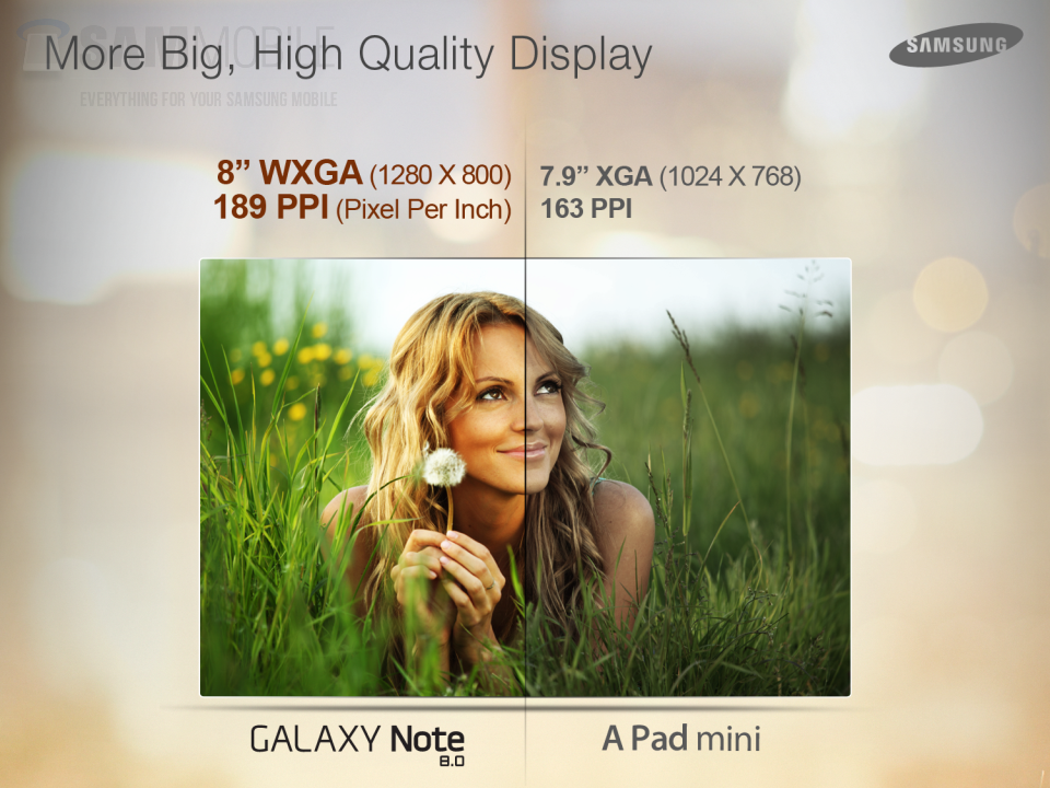 Samsung's Galaxy Note 8.0 is almost better in all ways. The only advantage the iPad Mini has over the Galaxy Note 8.0 is its thickness. Samsung expects to sell the Galaxy Note 8.0 from April. The price is a bit higher than the iPad mini.