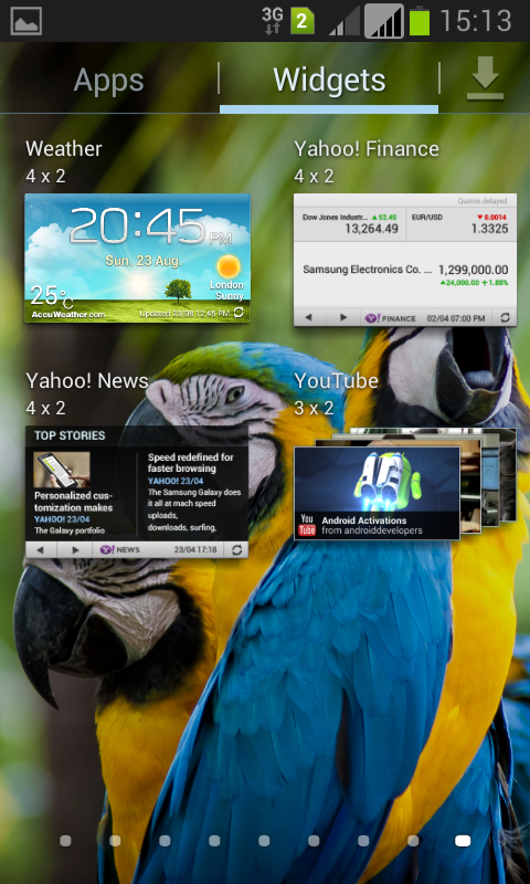 The Galaxy Grand has a screen resolution of 480×800 pixels, which can sometimes make the icons look pretty large. This might bother some people, but you will probably get used to it pretty fast. The Nature UX used on the Galaxy Grand contains a homescreen, menu and widgets. This is the same as for the other devices using the Nature UX. The widgets are resizable in both width and height.