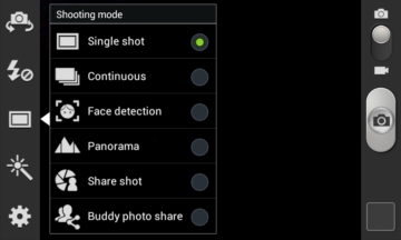 The back camera can take pictures in a lot of modes. One of these modes is the brightness. By adjusting the brightness, you might be able to take even better pictures with the camera. Some different landscape modes are included by Samsung as well. Other modes worth mentioning are the Smile, Burst and Panorama modes. For Panorama photos the maximum angle of the pictures is 180 degrees. We hope the next update will support 360 degrees photos for the Panorama mode.