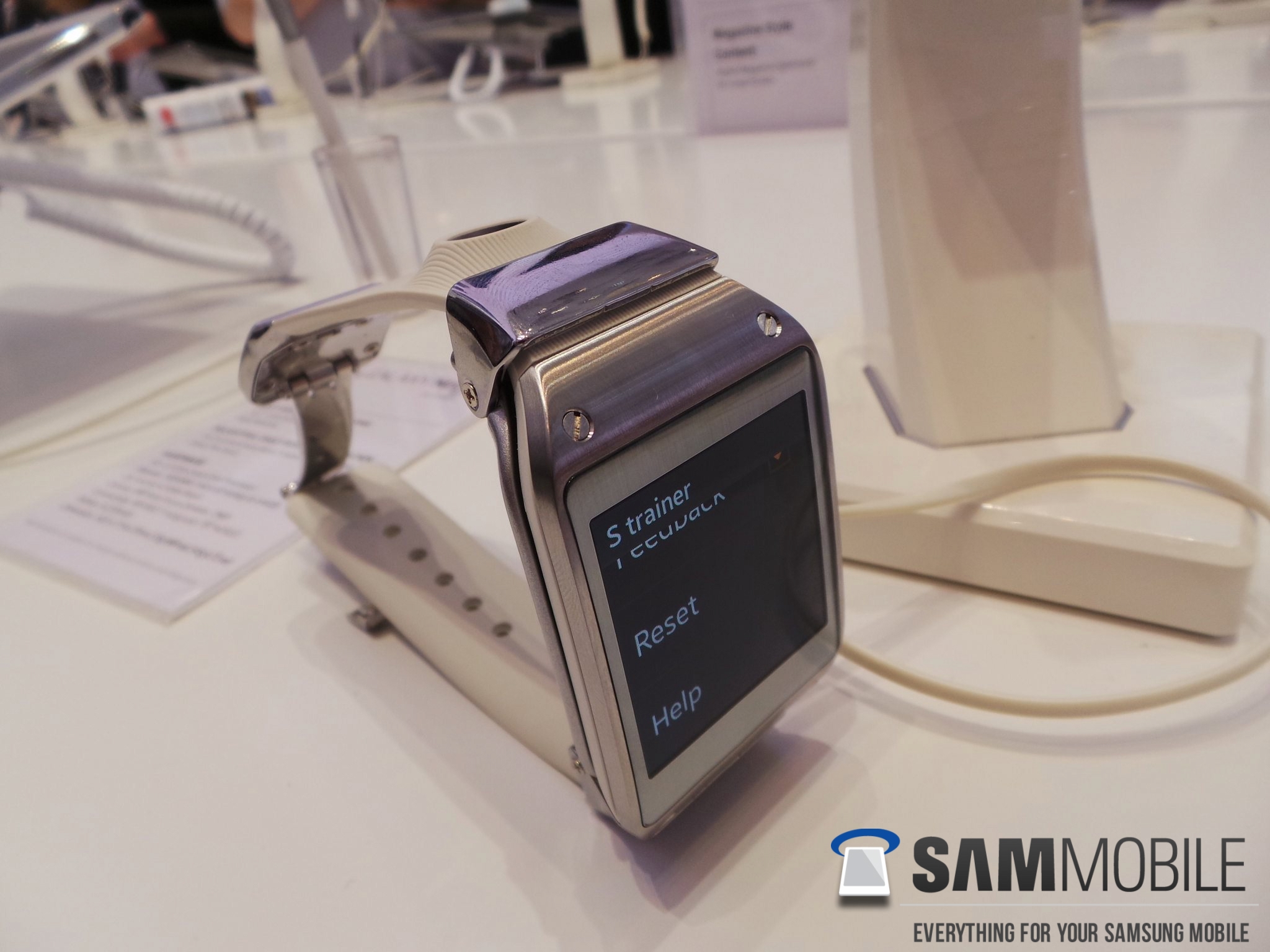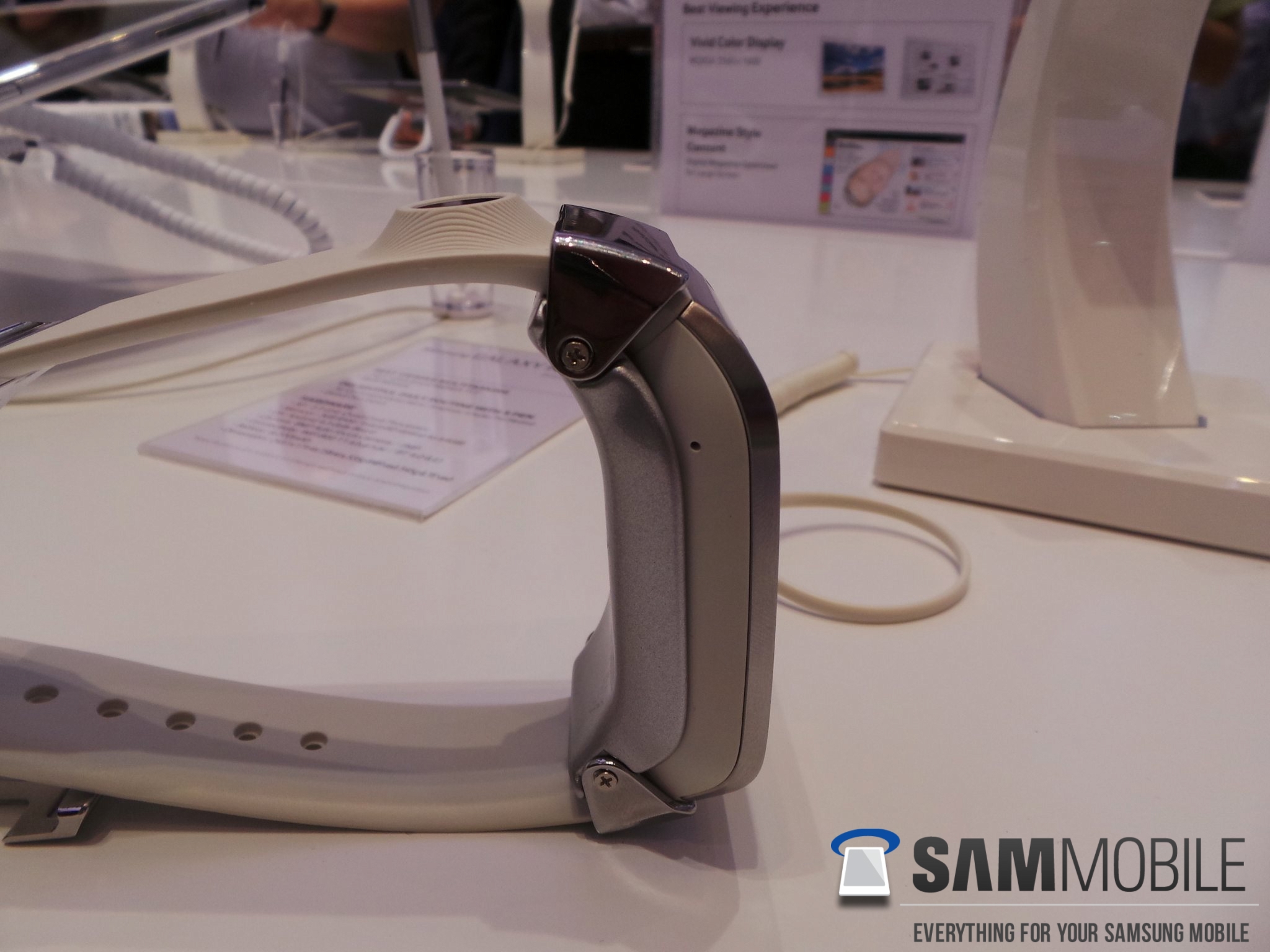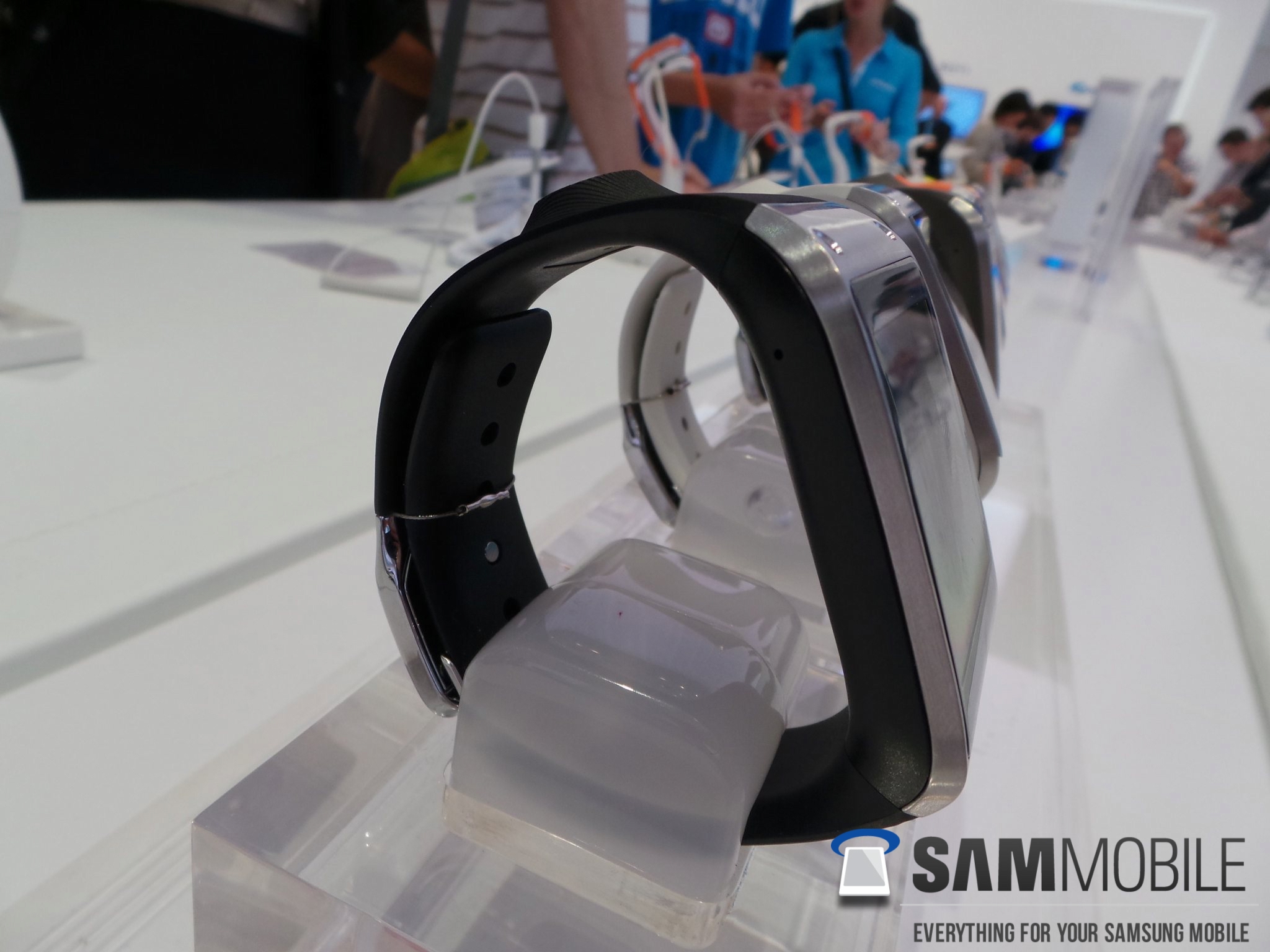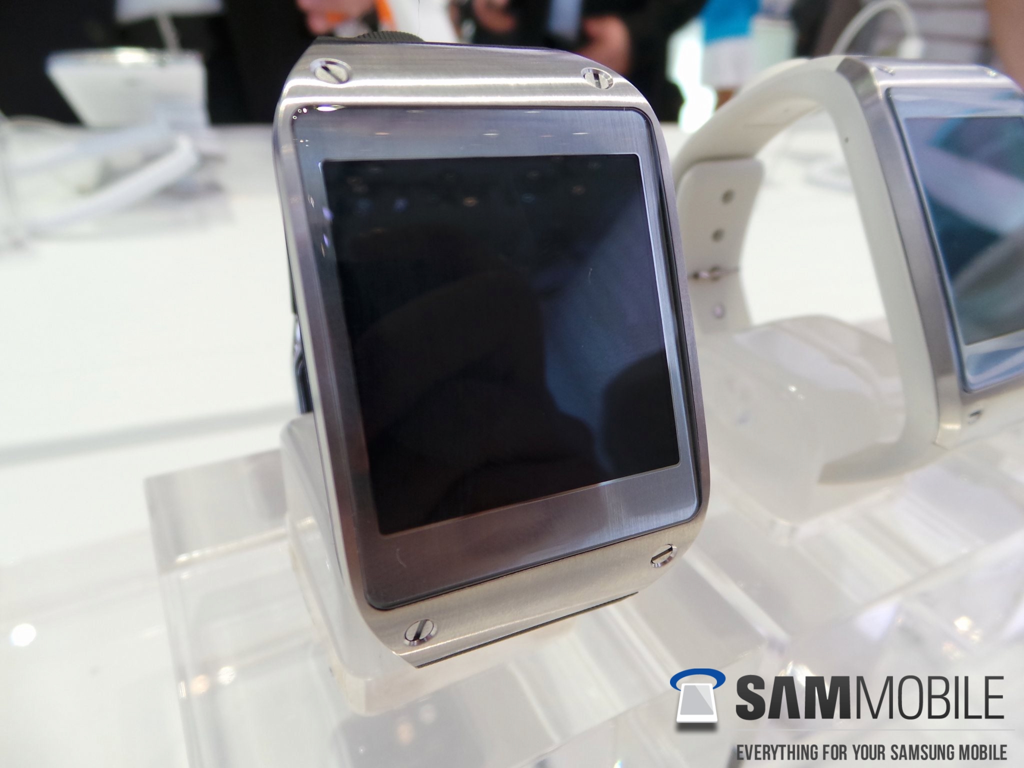 We inquired whether the Gear is waterproof, and got the response that it isn't but can handle water to some extent. Samsung won't advertise with this because they can't guarantee safety against water! Our advice: keep your smartwatch dry or check fast when it rains. We asked whether we could see a waterproof variant in the future – we didn't get a proper response, but the demo official did hint that it might be a possibility in the future.