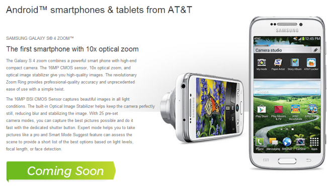 The Galaxy S4 Zoom sports a 16-megapixel camera with 10x optical zoom, optical image stabilization, Xenon flash, a zoom ring to zoom in/out of an image, and lots of features on the camera software. Other specs are pretty similar to the Galaxy S4 mini's, including a 4.3-inch qHD Super AMOLED display, 1.5GHz dual-core processor, 1.5GB of RAM, 8GB of internal storage, all the usual forms of connectivity, a 2,330 mAh battery, and Android 4.2 Jelly Bean.