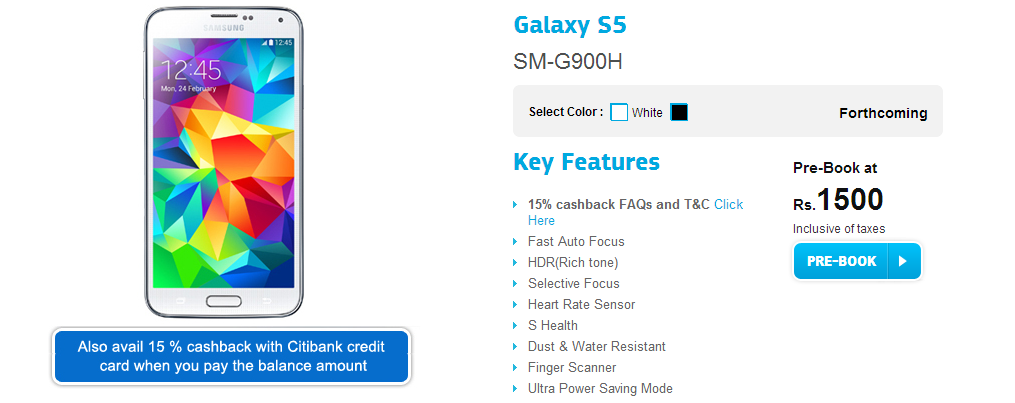 The Galaxy S5 variant that will launch later this week in India features an octa-core Exynos CPU and not the Snapdragon 801. Samsung India has indicated that the Galaxy S5 will not work with LTE networks in the country. Currently, only the black and white color variants of the Galaxy S5 are listed on the site, but the blue and gold versions should be available after the device launches this Friday. Along with the Galaxy S5, Samsung has also made the Gear Fit, Gear 2 and Gear 2 Neo available for pre-order on its official store.