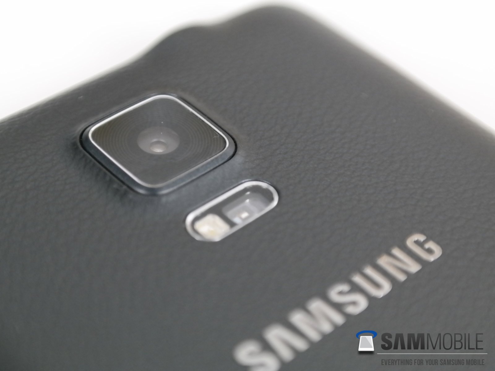 At the front, you get a typical Samsung phone – there’s a hardware home button that also houses a fingerprint sensor, and touch buttons for going back and switching apps on each side. The back of the phone has a plastic cover with a soft-touch feeling to it, though it’s not as soft as the Galaxy Alpha’s, which in our eyes has a better feel. It has the same faux leather textured back as the Galaxy Note 3, but the back on the Galaxy Note 4 feels a tad bit better. There’s a protruding 16-megapixel Sony camera on the back (this time with optical image stabilization), and below the camera we find the LED flash and heart rate monitor. Beneath those two we get the typical Samsung logo. If we look further down the back we see the loudspeaker, which we found is wrongly placed and would be better off at the bottom of the device like the Galaxy Alpha (and like the Galaxy Note 3.)