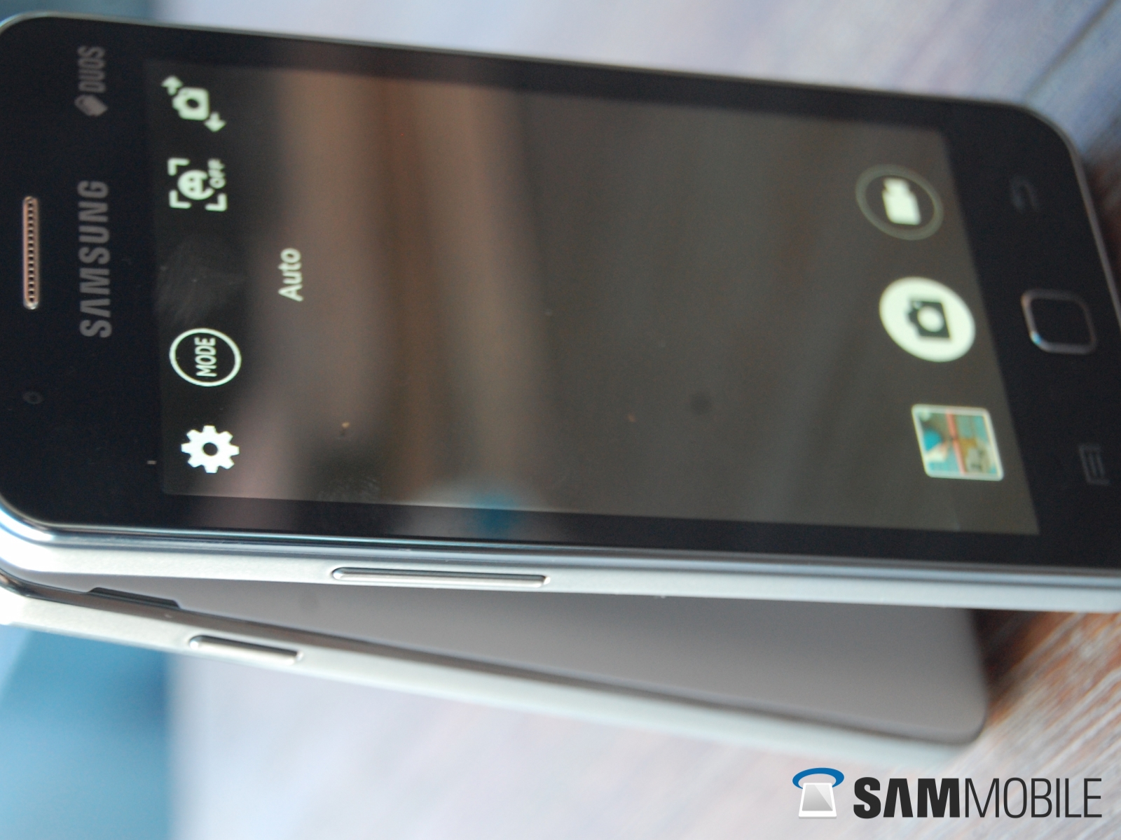 As we said in our hands-on preview, the Z1 looks a lot like Samsung's low-end Android phones, thanks to the overall shape and the placement of navigation buttons. It's a rectangular slab with an unassuming design. At the front, you have the Samsung and DUOS logos above the display, along with the speaker grille and front-facing camera. Below the display, there's a menu button, followed by a small physical home button, and a back key. The home button is oddly shaped: it's a square instead of the rectangular home button we see on Samsung's Android phones, making it a bit too tiny sometimes when you're using the phone.