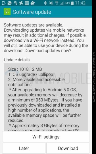 Looks like Samsung is really busy in rolling out Android 5.0 Lollipop to its devices. Samsung has already rolled out the update to the Galaxy S5, the Galaxy Note 3, the Galaxy Note 4, and the Galaxy S4 in various markets. Now, the Korean smartphone giant has started updating the Galaxy Note Edge (SM-N915G) in Australia. The OTA update has a file size of 1018.12 MB, and if you are in Australia, you should check for the update manually by going to the Settings » About phone » Software update menu.