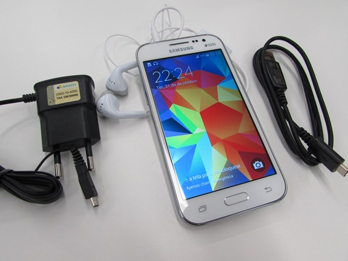 Coming in at 131 x 68.1 x 8.8 mm the Galaxy Win 2 weighs 130g, has dual-SIM functionality and support for 4G LTE. The device runs Android 4.4.4 KitKat out of the box. Samsung is offering it in black and grey in Brazil with a recommended price of BRL 729 ($233) for the variant without digital TV and BRL 779 ($249) for the one with digital TV.