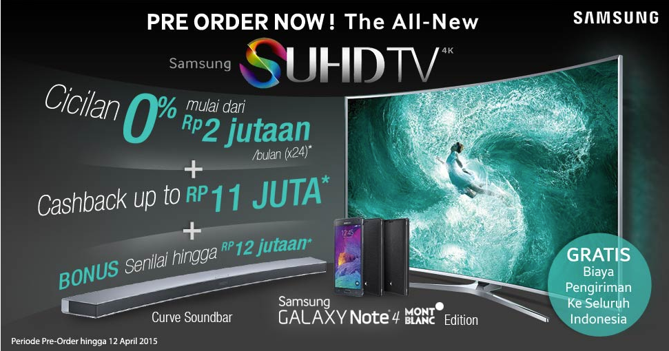 With that said, Samsung’s SUHD TVs are now up for pre-order in Indonesia through online retailer DinoMarket. Ordering the curved 55 or 65-inch JS9000 models will get you a free Curved Soundbar, while ordering the curved 78 or 88-inch JS9500 models will net you a free Galaxy Note 4 Montblanc Edition.