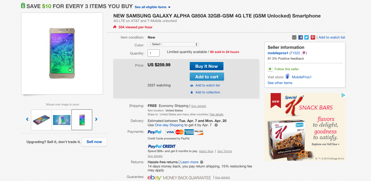 To put eBay’s price into perspective, the Galaxy Alpha costs $300 at Amazon, so, if you’re willing to trust seller mobilepros1, you just may use the $40 savings to purchase new apps, cases, and whatever else your heart desires.