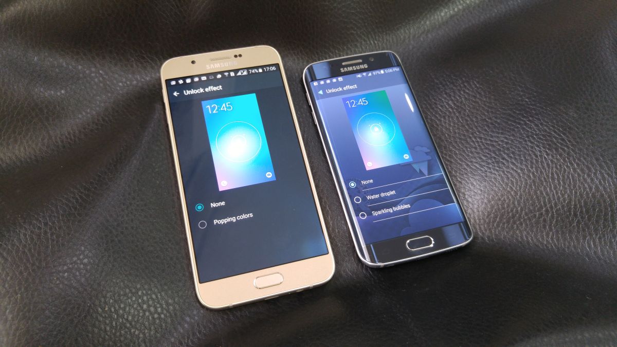To quote examples, the Galaxy A8 only has one screen unlocking effect in the lockscreen settings, and it's also missing the battery power optimization menu that Android 5.1.1 introduced on the Galaxy S6 (this menu let you stop background apps to save battery life.) In fact, this menu seems to have been removed from the Galaxy S6 and Galaxy S6 edge as well with the second 5.1.1-based update that was released earlier this month.