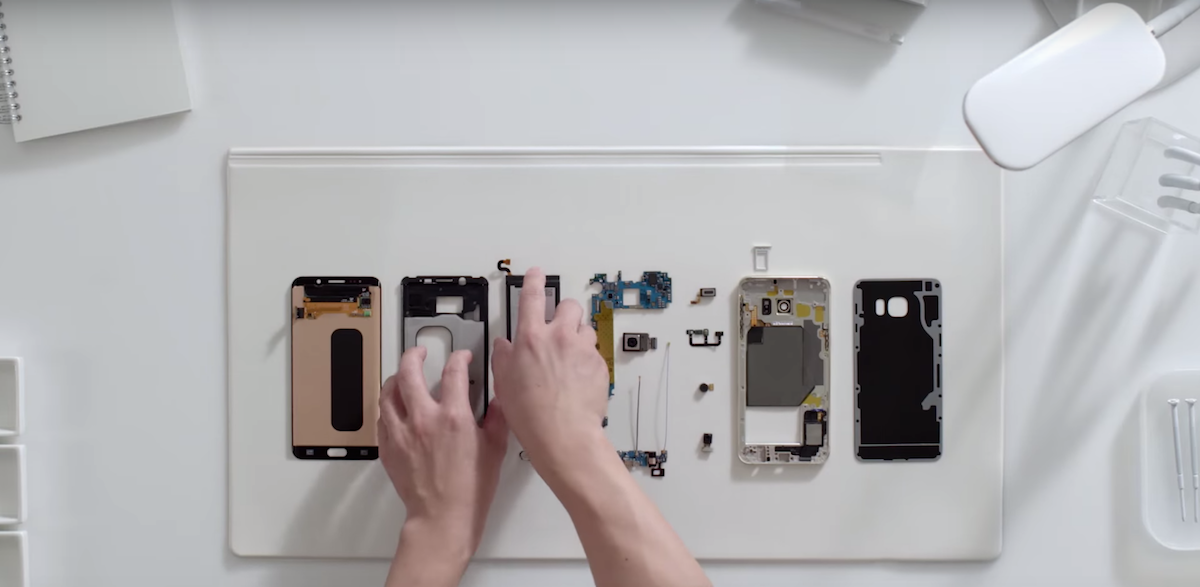 All of the components are laid out on a table and then they're put together by hand, the battery goes in first followed by the fingerprint scanner and the dual-edge display. In goes the rear and front facing camera as well as the application processor, RAM and onboard storage. Finally the wireless charging coil and metal frame are attached before the device is finished off with the glass back cover, packaged in a box and sent on its way. This is where the unboxing part of the video begins, aided by some very crisp sounds that we always hear when unboxing a new device. We get a look at all of the accessories that come in the box as well as the device itself. The video is beautifully shot and worth spending 1 minute and 21 seconds of your life on.