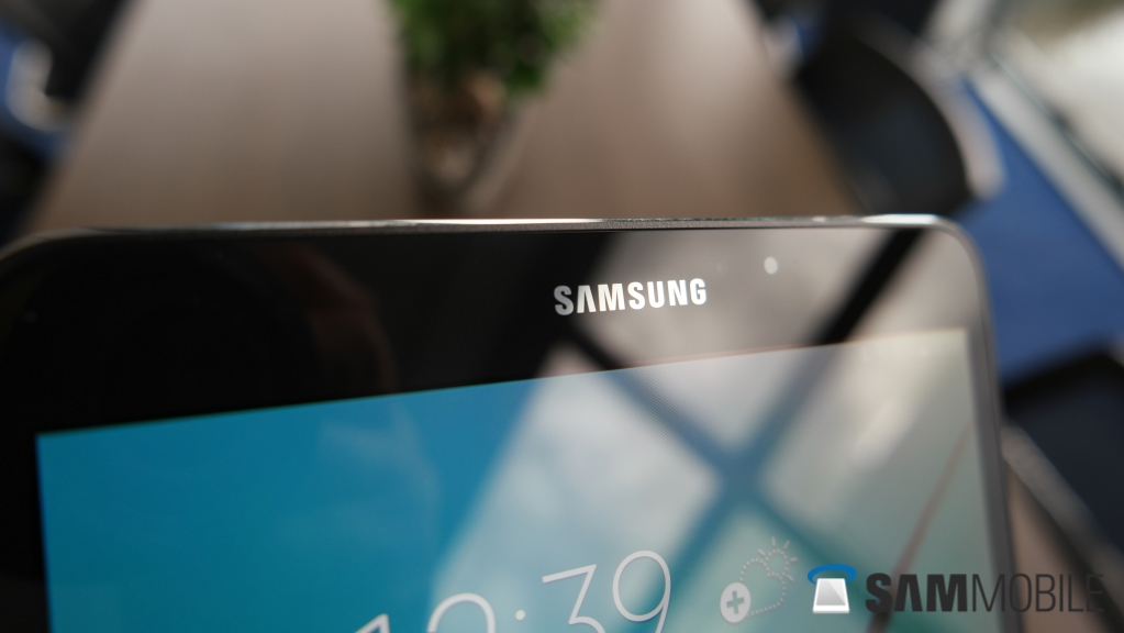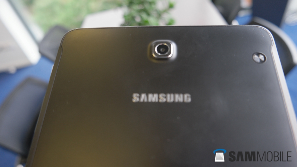 The front of the Tab S2 is dominated by the Super AMOLED display (which is gorgeous), with the hard home button, recent apps and back keys below it. The home button has an integrated fingerprint sensor – it's the same touch-based sensor as the Galaxy S6, and it's as accurate and fast as well. Above the display you get your usual sensors (including the front-facing camera) along with the Samsung logo.