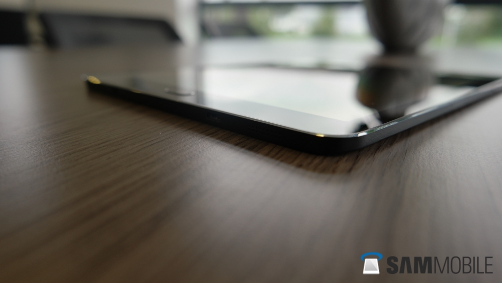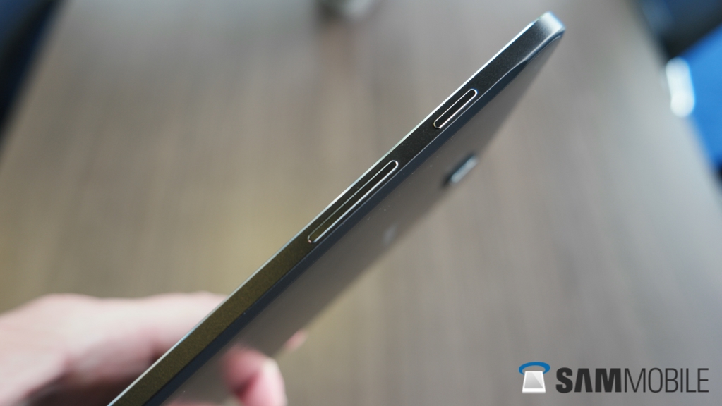 With the metal frame around the sides and the soft touch plastic on the back, the Tab S2 feels rather premium