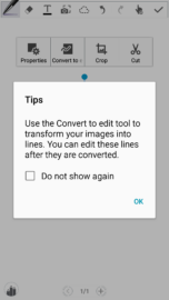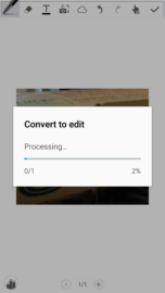 - Now that the photo is resized and ready, you’ll need to convert the photo in order to edit. You’ll be presented with four options (properties, convert to edit, crop, and cut). Select the “convert to edit” option in the box group and hit the check mark at the top right.