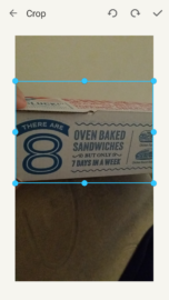 - Immediately after taking the picture, you’ll be directed to the photo and given the chance to crop or resize the photo. Resize the photo and then select the “check mark” at the top right.