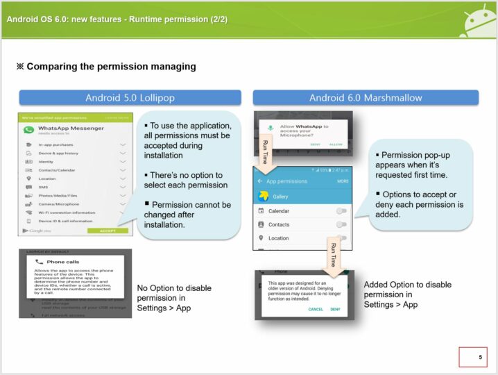 According to the guide, the major new features include the new Doze battery saving mode, advanced control of permissions for apps, dynamic audio and video rendering and synchronization, and “support for the MIDI audio protocol.” You can see visual comparisons of how the lock screen has changed (the clock is now moved to the center, the lock screen icons are more colorful, etc.) You can open links right inside the messaging app through the in-app browser, the Edge screen gets new functions, and the lockscreen has a few minor interface changes.