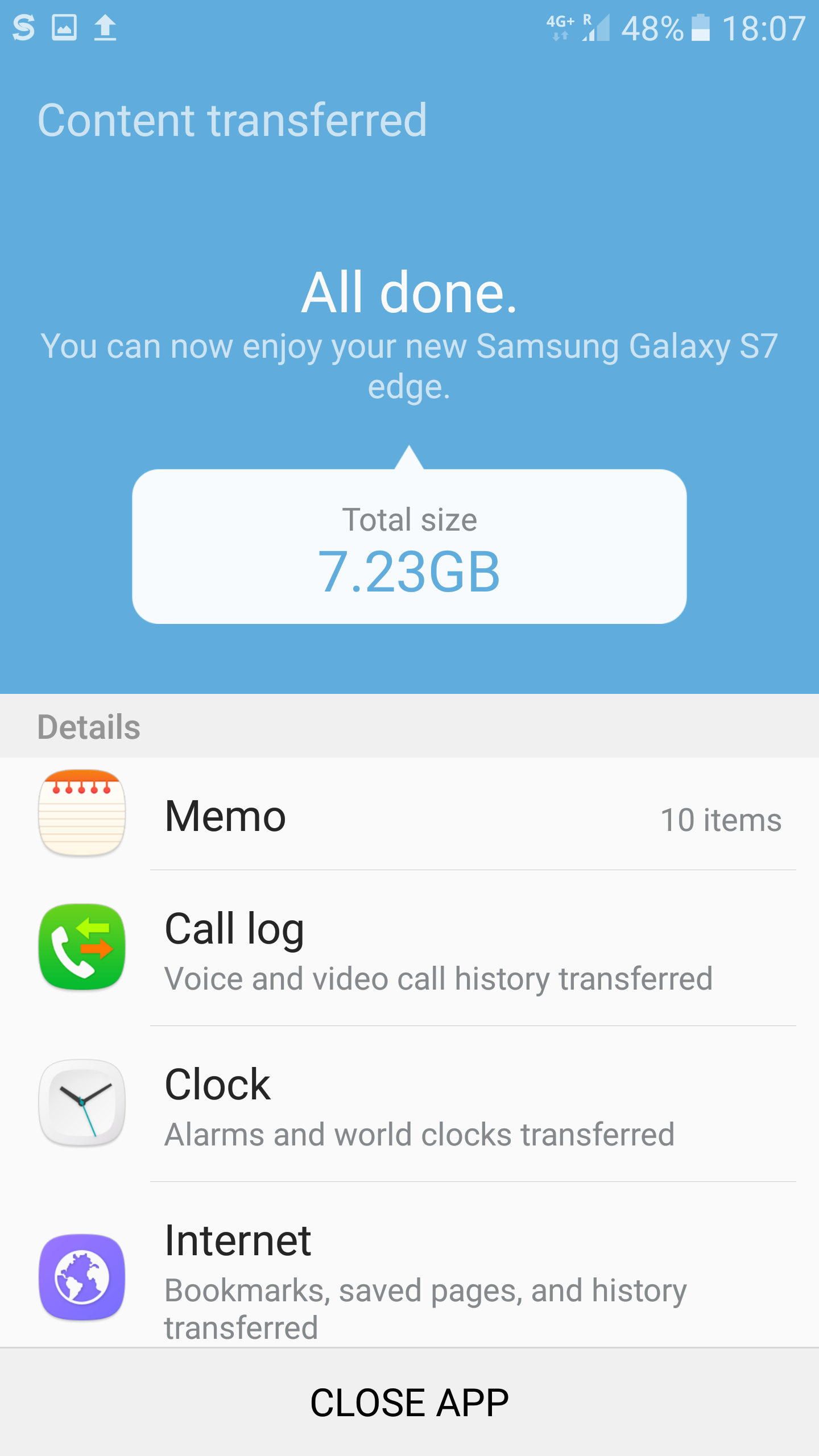 Smart Switch makes great use of this innovative technology by empowering users to connect one phone to another. The application transfers all of the selected content stored on the old unit to the new handset, which includes any S Planner events, call logs, alarms, emails and Internet bookmarks.