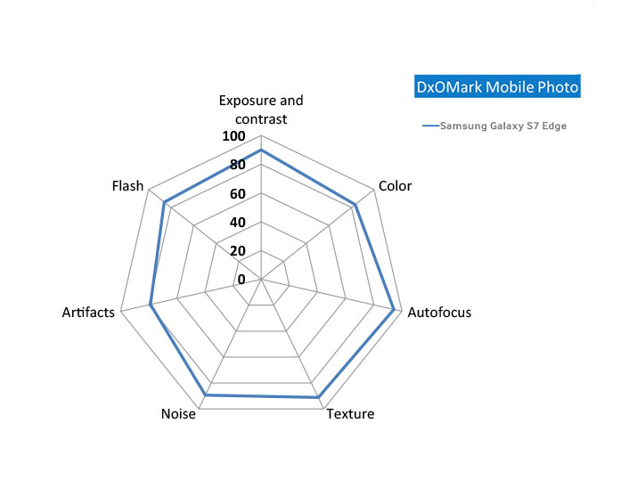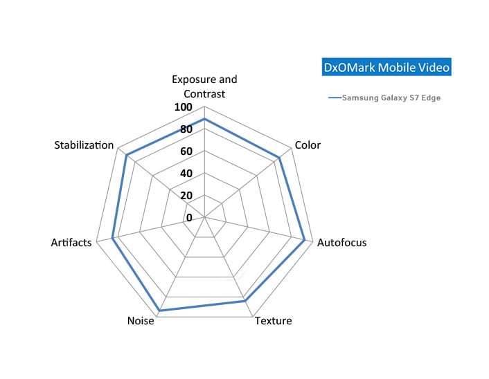 The Galaxy S7 edge was praised by DxOMark for its fast and accurate autofocus mechanism, perseverance of details under low light conditions, good flash performance and very low noise in images and videos. The device also showcased very autofocus behavior with good tracking and smooth convergence in videos.