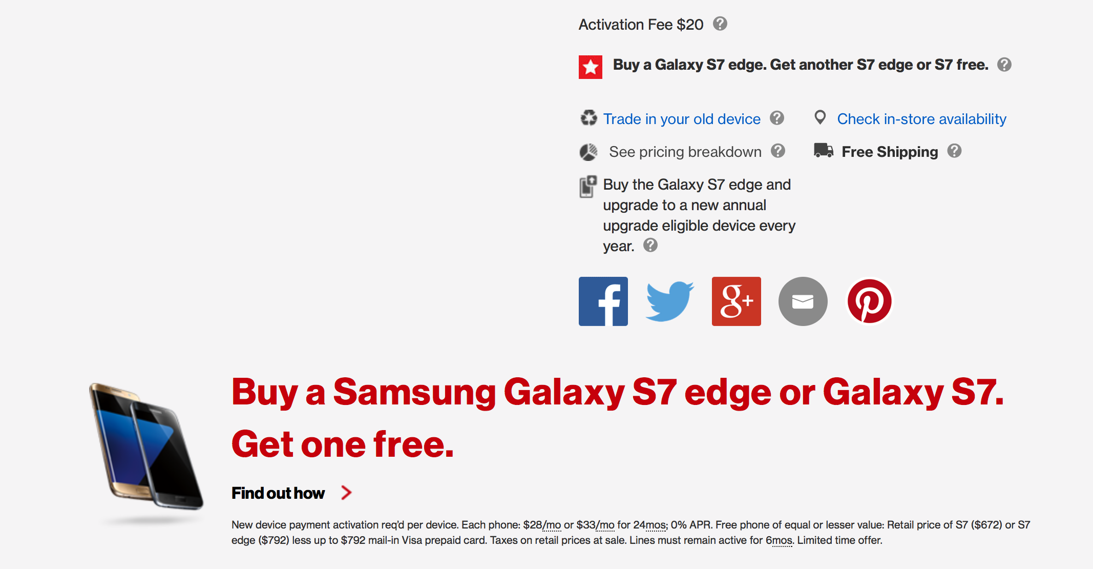 Sprint is offering the BOGO deal only on the regular Galaxy S7. If you want to buy the Galaxy S7 edge, then the offer changes to buy-one-get-one-50%-off. On the 50% off deal, you get a break on the monthly installment for the second device. To know more about these offers, click on the relevant source link below.