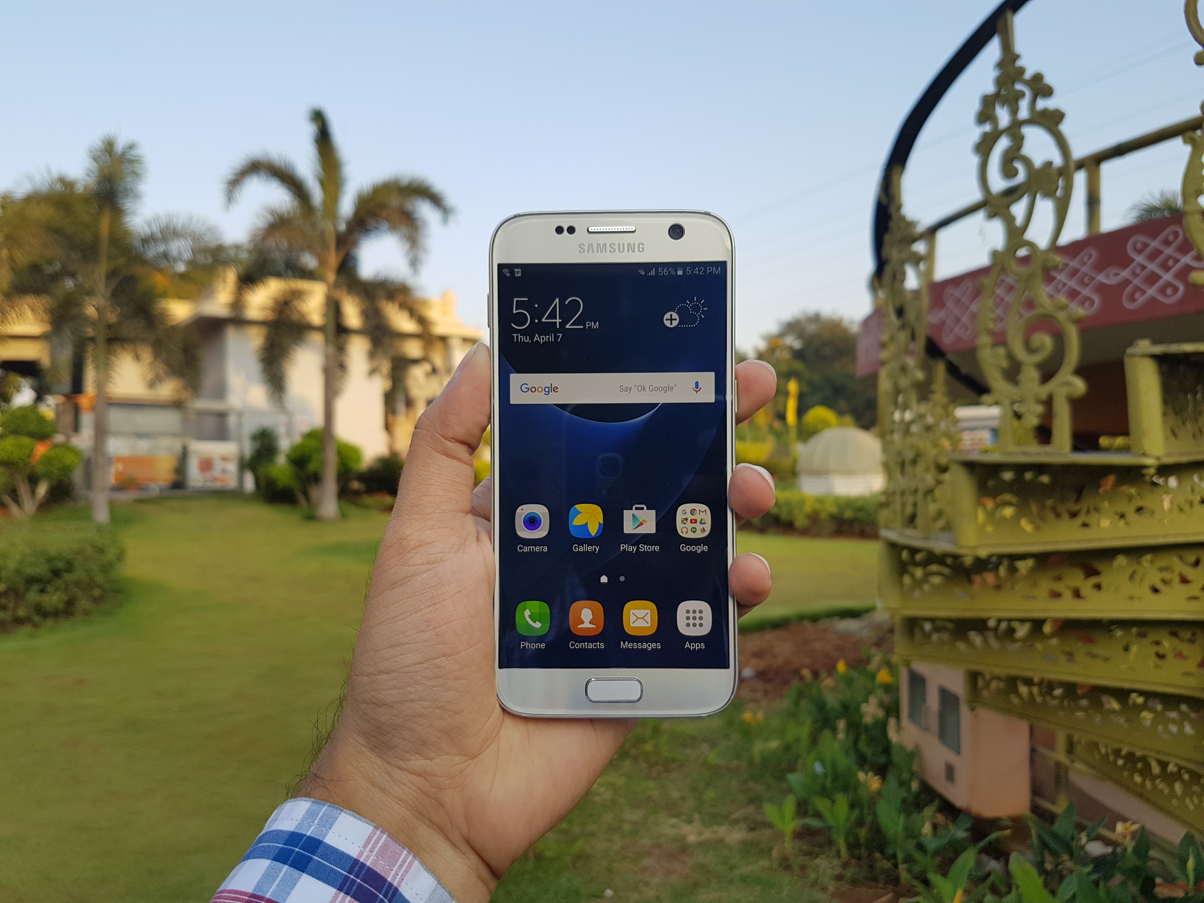 Water- and dust-resistance on the Galaxy S7 gives you peace of mind while taking your device to outdoor locations such as a beach or a pool party. The device is fragile to drops though due to the glass covering. Overall, the device feels comfortable to hold, use, and carry around. It's easier to put in and take out of your trouser pockets because of the compact size, which might please those that aren't comfortable with the larger Galaxy S7 edge.