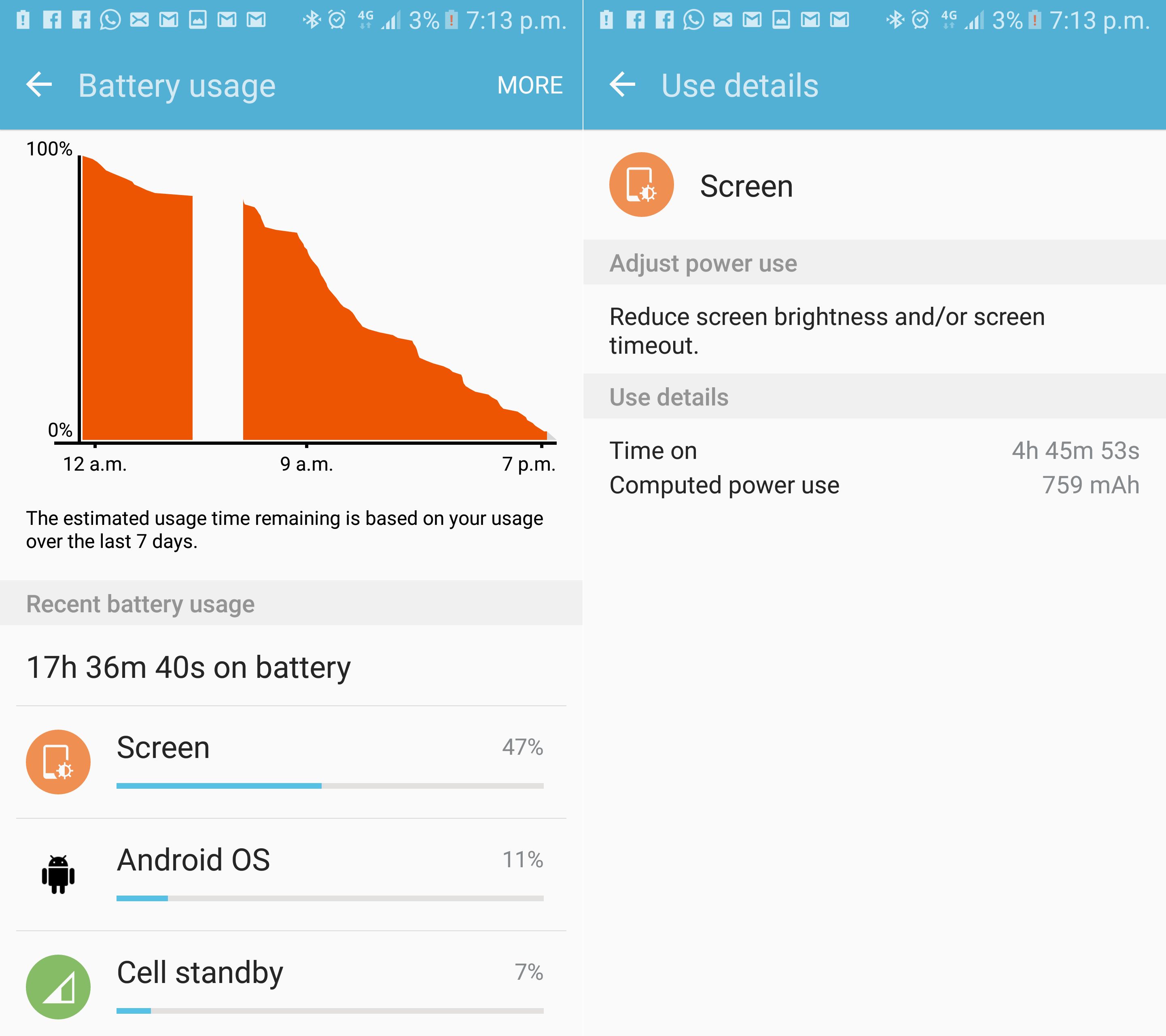 As a result, the device lasts a full day after a complete charge. Over the course of three weeks, the device was consistently able to last a whole day with around 4-5 hours of screen-on time. I also had the Gear S2 classic connected to the Galaxy S7 at all times. If you don't have any wearable connected, the Galaxy S7 can last even longer. The first few days might not see you through the day, but let the battery settle and the endurance becomes pretty good.