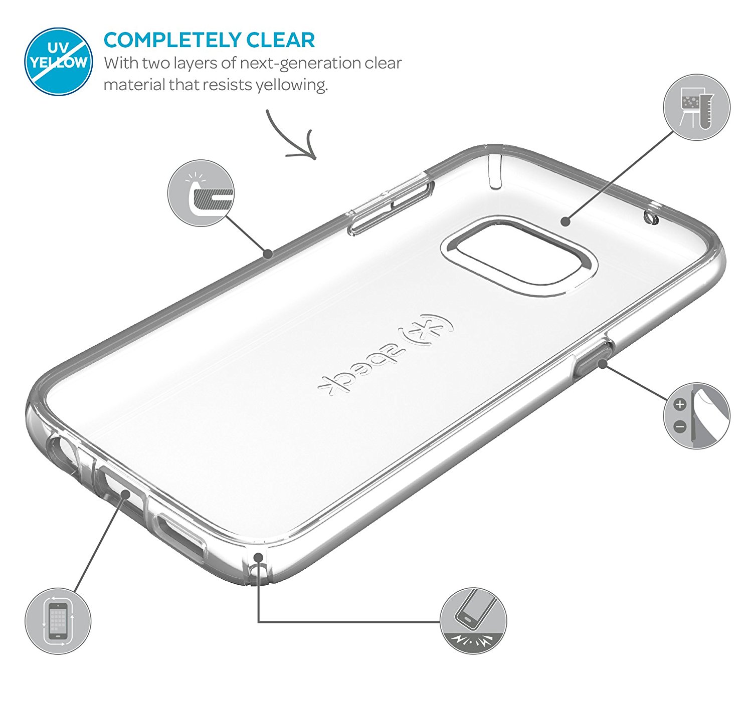 The Speck CandyShell clear case for Galaxy S7 has a dual-layer design. The exterior hard shell disperses impact while it has a shock-absorbing interior layer. It also meets MIL-STD-810G drop test standards. The design is completely clear so it lets you show off the color of your handset. Buy it on Amazon for $11.