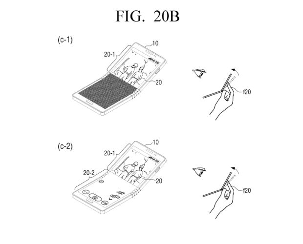 One patent describes a device that has a flexible display panel and a flexible image processing board connected with at least one artificial muscle that's configured to be deformed so that the shape can be changed when voltage is applied. Samsung details the artificial muscle as a matrix of small connected plates – when bent by an external force – seek voltage from a controller in the image processor board so that the artificial muscle can maintain the bending state. The second patent details a display panel that's segregated into a top and a bottom region allowing the two to be bent in half. It's obviously too soon to speculate if and when this technology will see the light of day. Samsung patents many technological inventions and not all of them make it to market.
