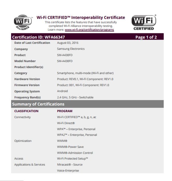 Unfortunately, we don't have much to go on with regards to specifications. All we know for certain is that the Galaxy A4 carries the model number SM-A430. A recent Zauba import listing points towards it sporting a 5.5-inch display and being priced somewhere in the region of INR 25,000 ($373) and INR 30,000 ($448). We also expect it to pack an in-house Exynos processor, 3GB of RAM, a 13MP rear-facing camera, a 5MP selfie shooter, a 3,000mAh non-removable battery and ship running the latest build of Marshmallow.