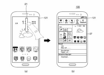 The patent application, filed in May 2015, shows how both operating systems can be displayed in two windows, enabling the user to drag and drop files between them. It is possible to minize one OS to a floating icon, in the same way an application can be minimized in the current TouchWiz UX. Pressing the Home button brings the user back to the Android home screen.