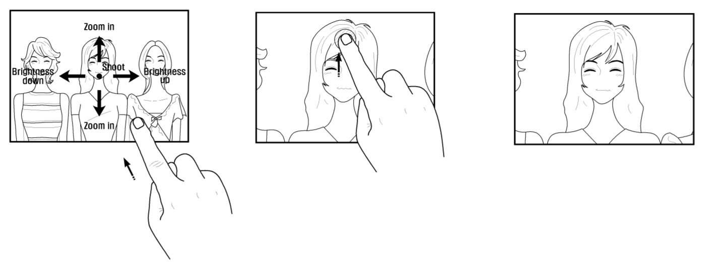 In the patent application, which was filed on September 13, we see a camera interface with improved zoom control. Just like the one-finger exposure control Samsung currently uses in its camera app, zooming in and out can be a one-finger gesture as well. Currently, zoom can be controlled by pinch-to-zoom, or assigned to the volume keys, as it has been for years.