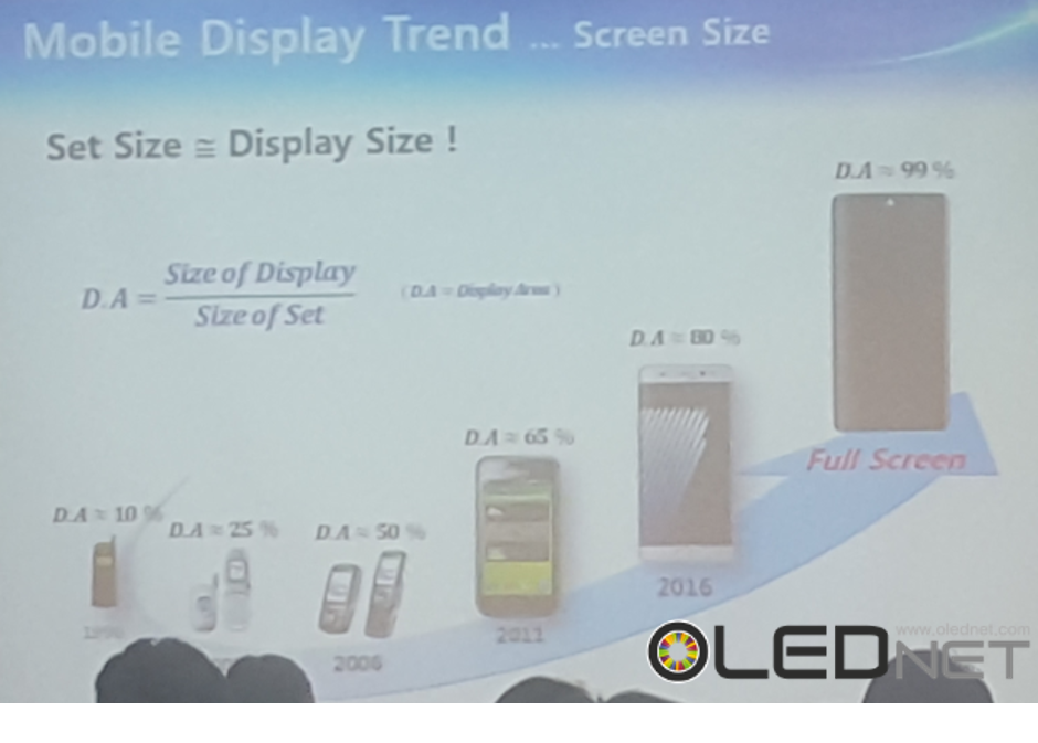 The average display area ratio is currently at 80 percent among most smartphones available in the market but some have been trying to push the envelope. Park said that Samsung Display will try and push this ratio to about 99 percent over the next few years which will basically mean that every corner of the device will be covered by the display panel.
