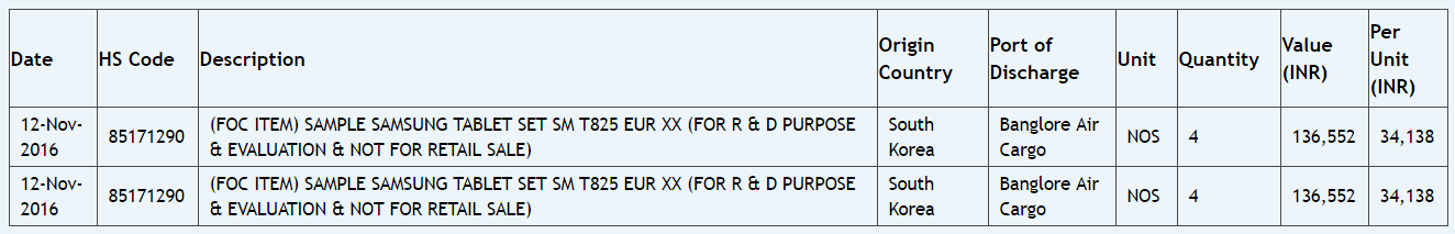 The Galaxy Tab S3 has been spotted in Indian import tracker Zauba which shows that multiple units of the Galaxy Tab S3 LTE variant (SM-T825) have been imported into India for the purpose of research and development as well as evaluation. Little is known about the specifications of Samsung's next flagship tablet at this point in time but it's expected that the tablet will feature an AMOLED display. We'll bring you more information about the Galaxy Tab S3 as it comes in, for now, you can just keep your fingers crossed for an early launch of this tablet in the first quarter next year if you really want to buy a new tablet from Samsung.