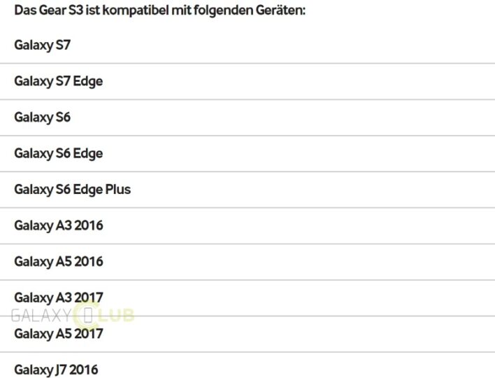 A list on Samsung Austria's official website mentions the devices that the Gear S3 is compatible with. The list includes the Galaxy A3 (2017) and Galaxy A5 (2017) but not the Galaxy A7 (2017). This goes to show that there's a possibility that the top-of-the-line version might not be released in Europe. That's because Austria almost always gets all devices that are meant for a wider release across the continent.