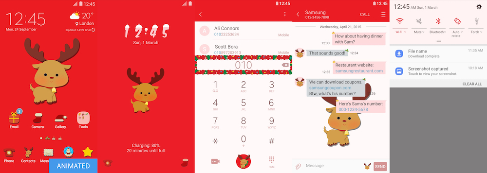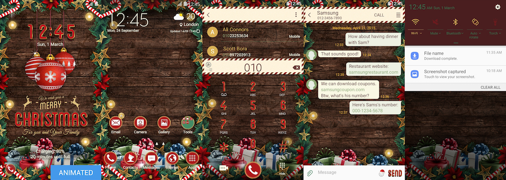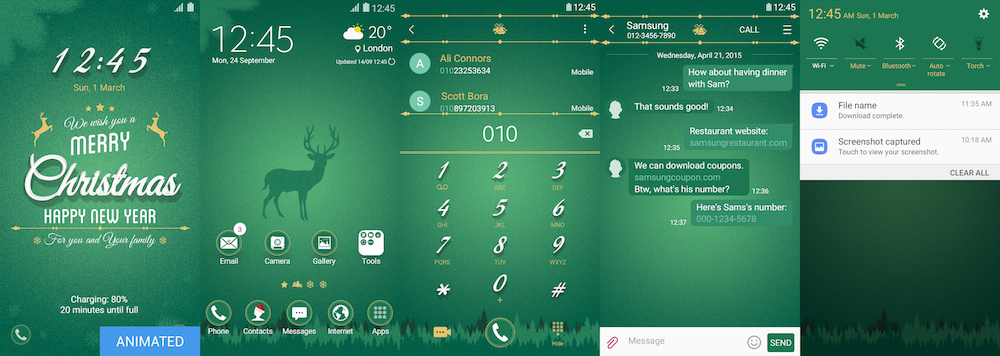 Themes packages like [Walk On Mars] Christmas Card (Live) and Flying Santa (Live) offer minimal design. On the other hand, you can check out the ones like EiD – Christmas Tree (Live), EiD – Green Christmas (Live) which go all out. Check out all the theme packs that we’ve liked below.