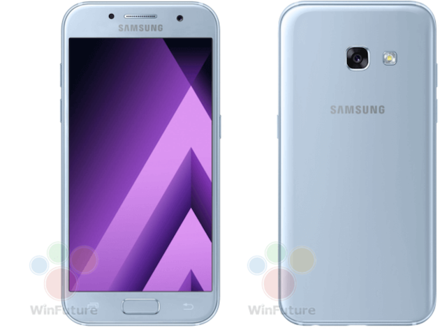 The Galaxy A3 (2017) is said to feature an Exynos 7870 processor with 2GB of RAM and 16GB of internal storage. It will feature an 8-megapixel front and 13-megapixel rear camera, LTE, NFC, Bluetooth 4.1 aside from its 4.7-inch 1280×720 pixel resolution Super AMOLED display. It may be priced at 379 euro.