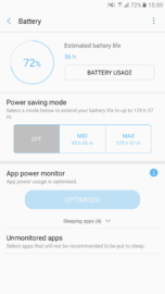 The Galaxy A7 (2016) had a 3,300mAh battery and we found that it provided wonderful battery life. Samsung has kicked things up a notch with its successor as it features a 3,600mAh battery. It has the same capacity as the Galaxy S7 edge and will never leave you feeling anxious about running out of charge before the end of the day. The app power monitor feature detects apps that are using the battery in the background and allows users to put them to sleep to extend the battery life.