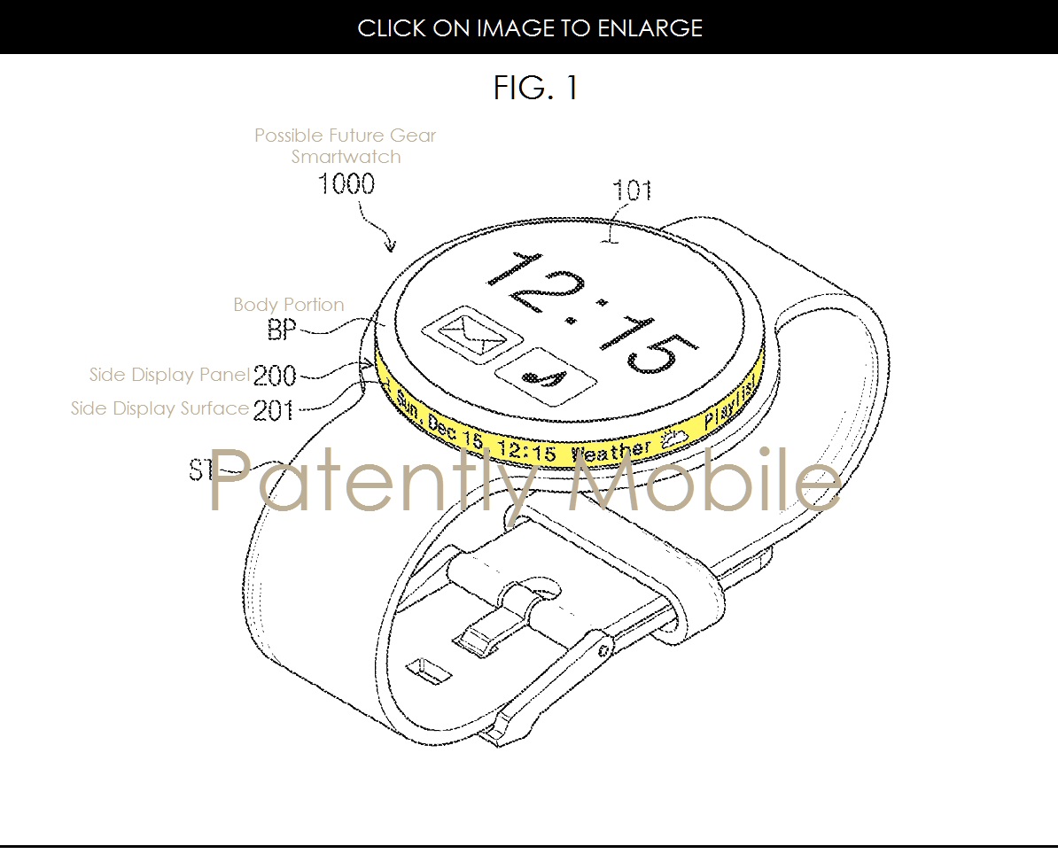 Samsung introduced its rotary dial design with the Gear S2 and it retained it for the Gear S3. The rotating dial makes it very easy to navigate the interface. This new Samsung patent details a secondary display that would be placed around the rotary dial area. The design illustrated in the patent shows that the rotation of this display will be limited to 90 degrees.