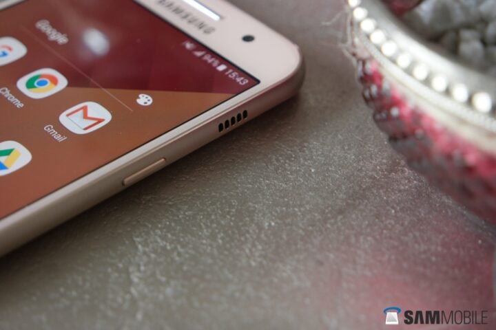 The A3 (2017) comes with the same button placement as any other phone we have seen from Samsung. The home button on the front features a fingerprint sensor; the big change here is the placement of the speaker, which is now above the power button on the right of the device. The left side has the volume rockers and SIM tray, while the top has a microSD slot and the secondary mic. The bottom of the phone holds the USB Type-C port, the 3.5 mm audio jack and the primary microphone.