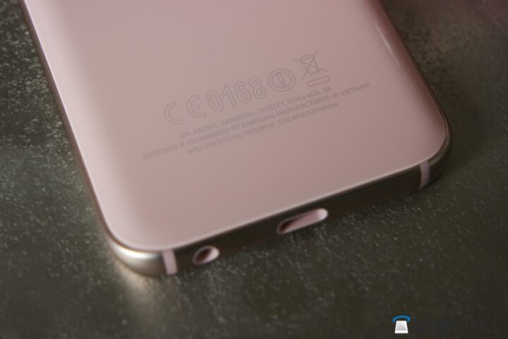 The unit we reviewed is the pink version; it’s a pastel kind of pink that Samsung calls Peach Cloud, one that I think will do very well with the ladies. The front of the device looks excellent with the slab of Gorilla Glass 4 surrounded by the pink frame.