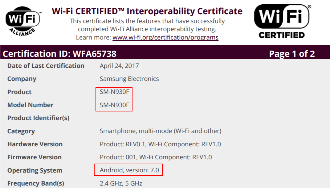 The refurbished Galaxy Note 7 bears model number SM-N935S and it's not at all surprising to see it receive its Wi-Fi certification on Android 7.0 Nougat. The letter “S” denotes that this variant is likely meant for South Korea.