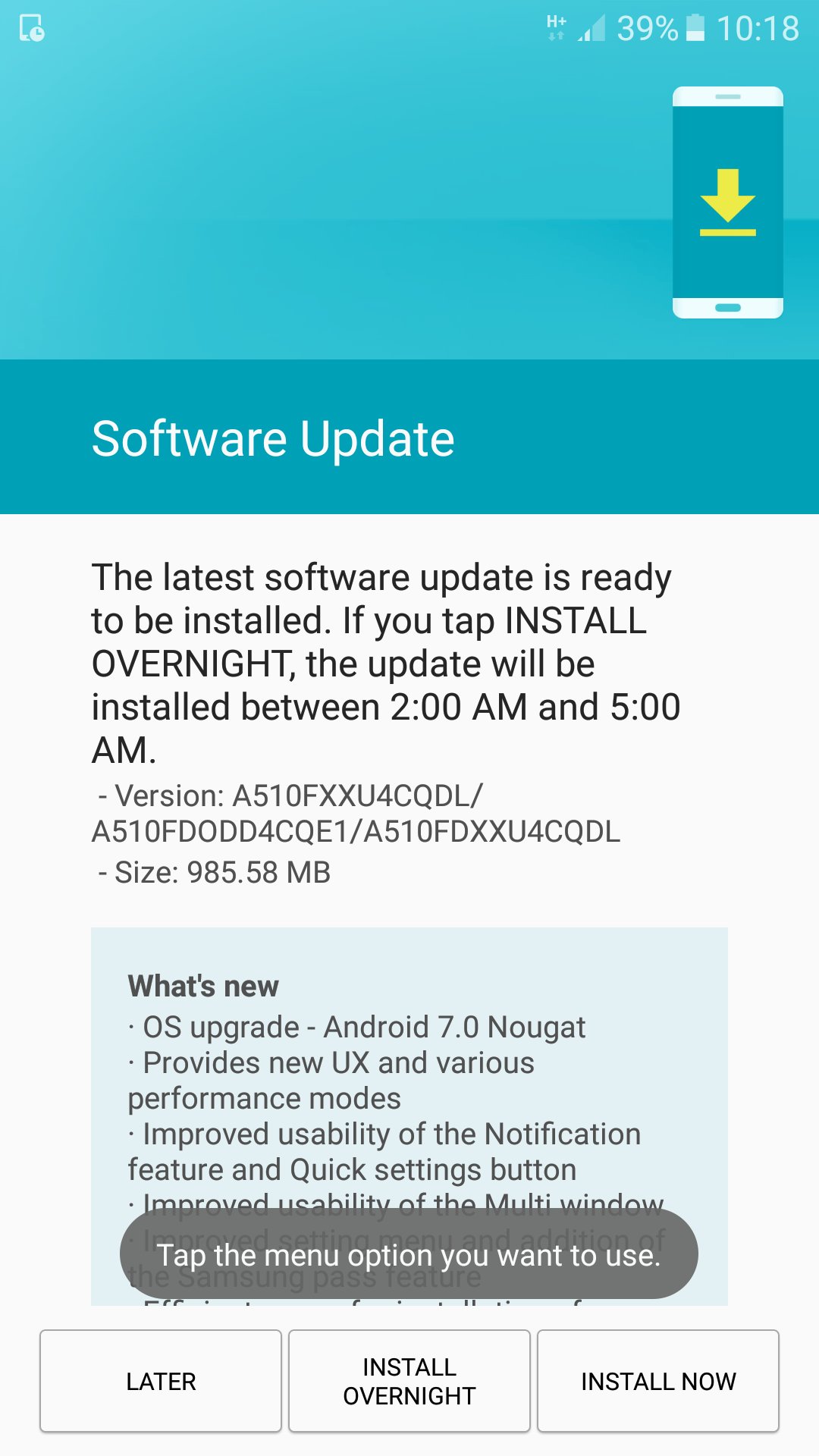 Update: The update is also rolling out for the Galaxy A7 (2016) (as a 970 MB download) in India, as pointed out to us by Navin. We've added more screenshots.