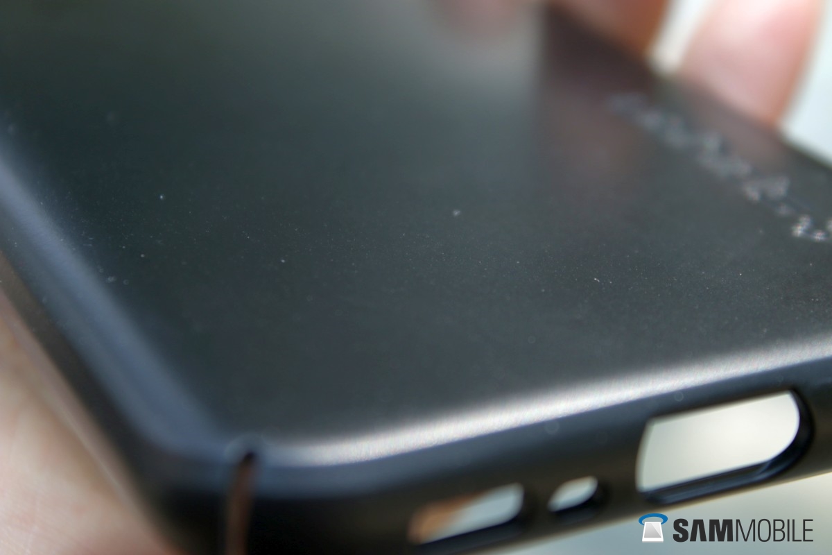 An even bigger problem is that the non-black color options don't seem the same rubberised material on the back. The Orchid Gray version, for example, is made of slippery plastic that defeats its purpose. The color also looks somewhat cheap, so you might want to stick to the black version of the case. Thankfully, unlike last year with the S7 and S7 edge, Spigen isn't putting the words “Auto Focus” at the back of the case, instead opting for just its logo at the bottom right.