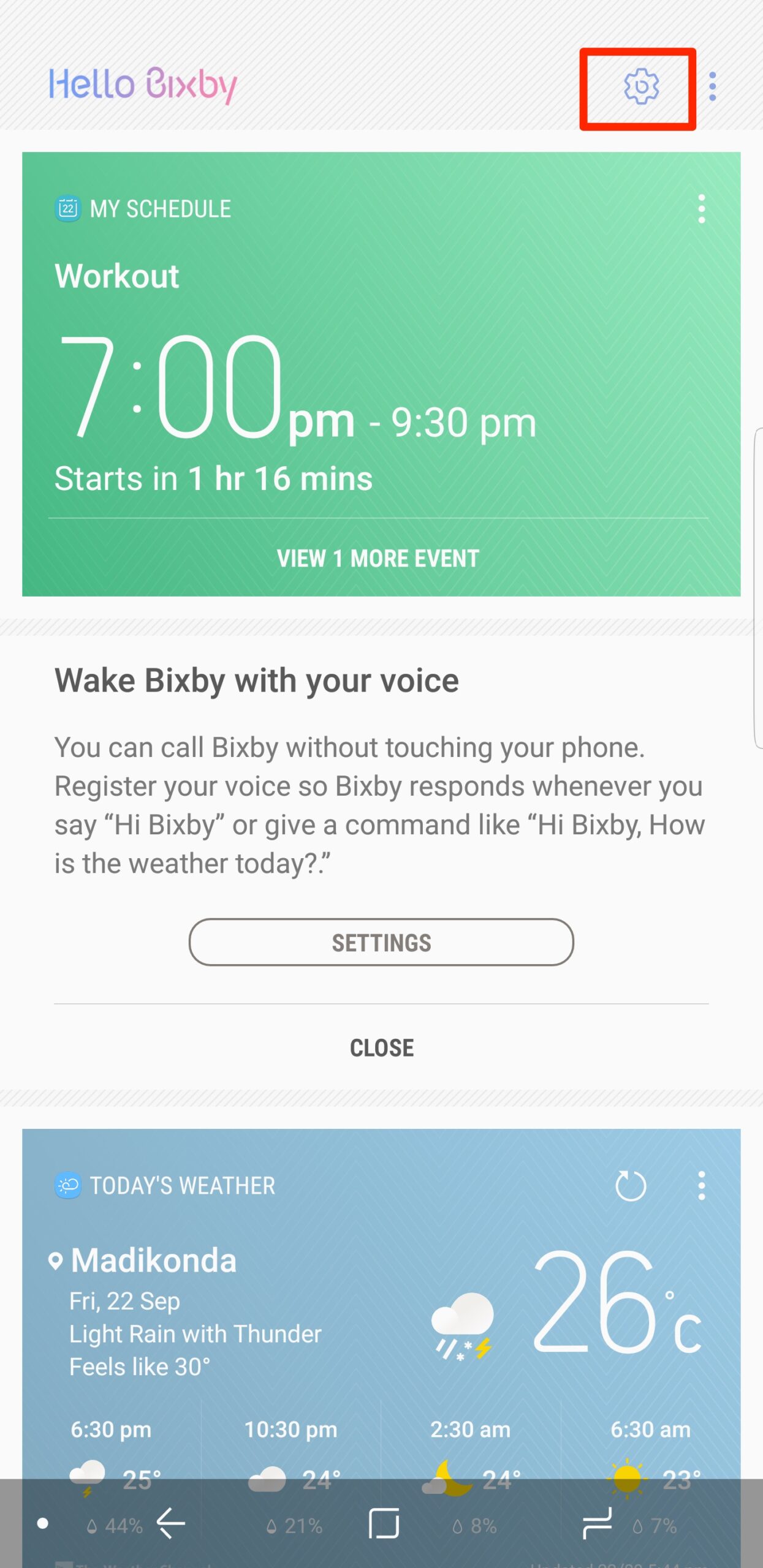 Step 3: Now, open the Bixby Home screen and click the gear-shaped icon on the top right corner of the screen. Now, turn on the Bixby Key option by toggling the switch.